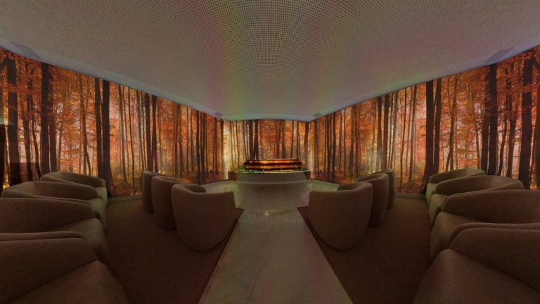 • Sala imersiva: espaço com projeção em 360 graus, música ambiente e experiência multisensorial para a última homenagem;