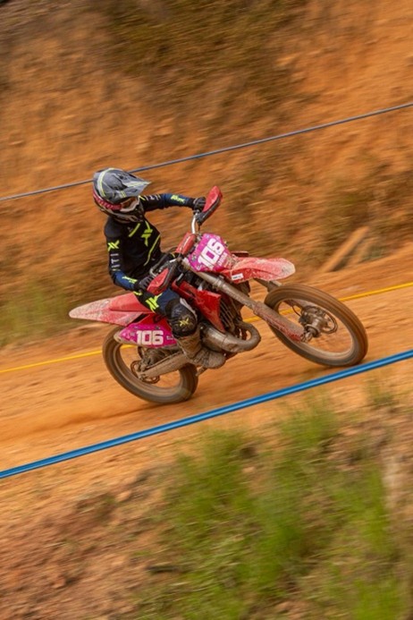 Estreia no time – Na categoria feminina a Rinaldi também está bem representada. A paulista Eduarda Campos, mais conhecida como Duda, passa a defender a marca a partir da etapa de Castro Alves. Aos 14 anos, a piloto de Mairiporã (SP) começou a fazer trilha aos 6 anos com os pais, ambos são pilotos e também competem. Entre os títulos é bicampeã brasileira de Enduro (categoria Kids feminina 2024/ 2025), campeã paulista (categoria feminina 2025) e campeã paulista de Sprint Enduro (categoria feminina 2025).