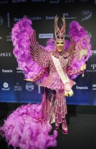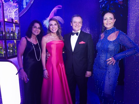 Para a ocasião, Magali Leite vestiu Apartamento 03 e adereço de cabeça assinado por Diego Cattani, em sintonia com o espírito fashionista e criativo da noite. Já Paulo Morais, trajou um smoking tradicional com lenço em tom coordenado ao vestido de sua esposa, Márcia Guerra de Morais, também presente no evento. Para finalizar seu look, do estilista Victor Zerbinatto, Márcia portou ainda um pente de plumas e flores. O styling de ambos foi assinado por Murilo Mahler, em uma aposta de cores para celebrar a festa mais colorida do mundo.