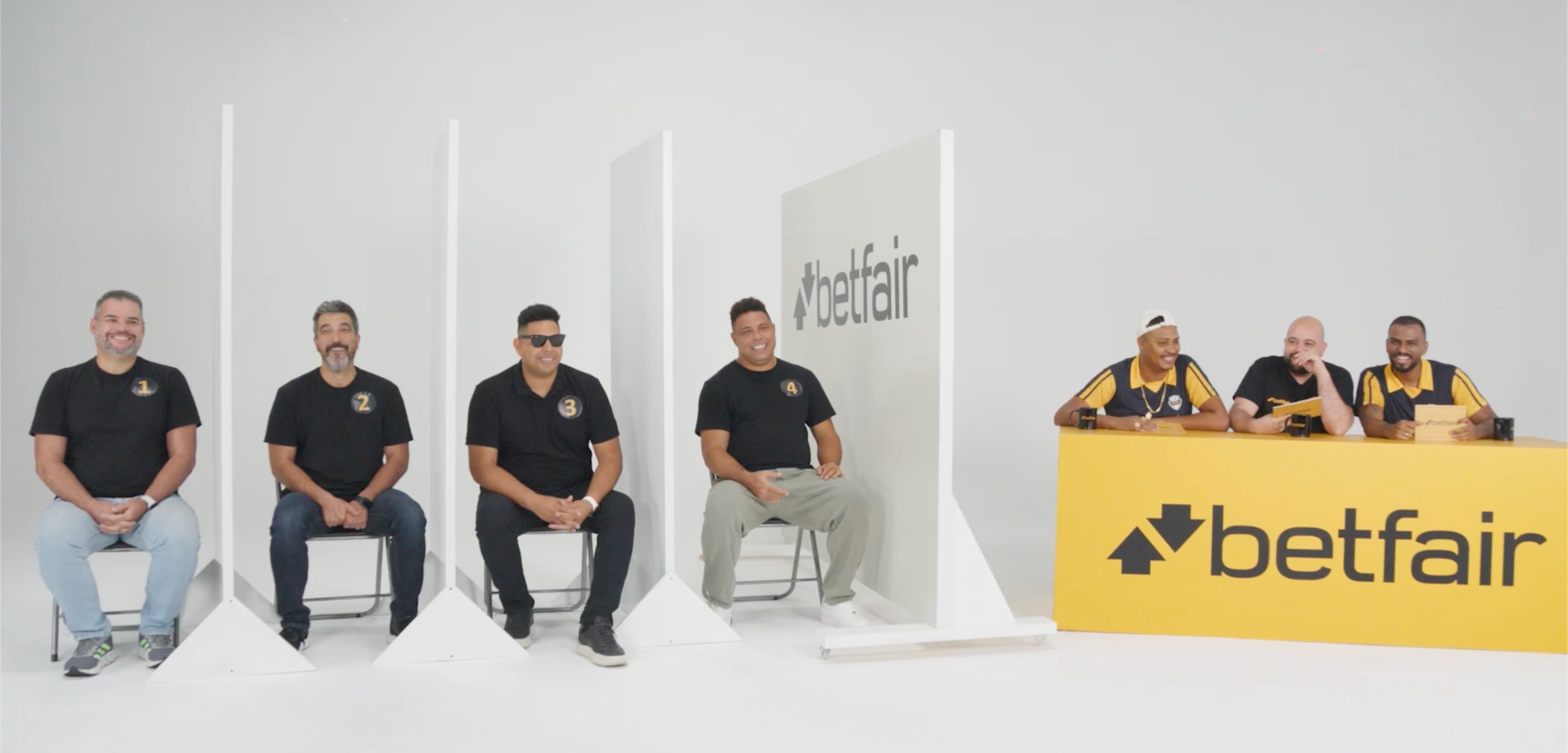 Em uma ação surpreendente e bem-humorada, a Betfair reuniu fãs que imitam a voz de Ronaldo Fenômeno – sem que eles soubessem que o próprio embaixador da Betfair estaria na disputa. A campanha apresenta uma dinâmica em que três imitadores entram em uma cabine especial da Betfair, e jurados conhecedores de futebol precisam adivinhar quem é o verdadeiro Ronaldo entre os imitadores.
