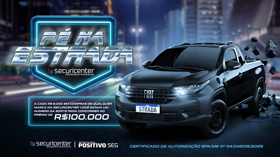A campanha, exclusiva para empresas com CNPJ ativo, sorteará um cartão premiação de R$ 100 mil, que é o valor sugerido para a compra de um Fiat Strada Endurance 0 km. Para participar, basta acumular R$ 5 mil em compras de produtos na Securicenter, entre 10 de junho e 30 de setembro de 2025. A cada R$ 5 mil, a empresa recebe um número da sorte e deverá acessar a página da campanha para validar sua participação e seus pontos. E durante os dias da Exposec a chance de ganhar aumenta: cada R$ 5 mil dá direito a cinco números da sorte.
